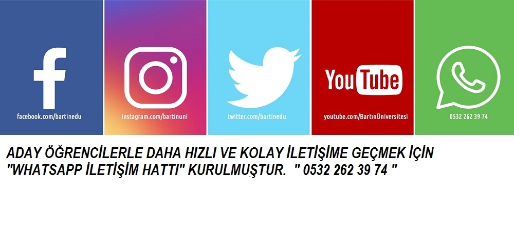Üniversitemiz 2017 Lisans Yerleştirme Sonuçlarının açıklanmasının ardından üniversite adaylarıyla daha kolay ve hızlı iletişime geçmek için “WhatsApp İletişim Hattı” kurdu. Üniversitenin web sayfası ve aday öğrenci sayfası üzerinde oluşturulan internet bağlantısı veya 0532 262 39 74 telefon numarasıyla öğrenciler sorular sorabiliyorlar. WhatsApp üzerinden iletilen mesajlar uzman kişilerle görüşülerek hızlı bir şekilde cevaplandırılıyor.