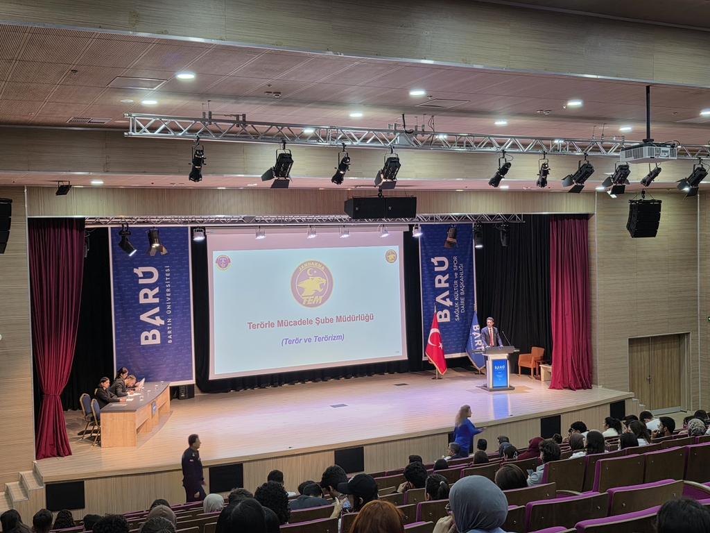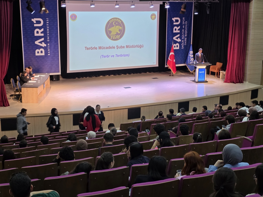 30 Ekim 2025 tarihinde, üniversitemiz ve Bartın İl Jandarma Komutanlığı ile beraber öğrencilerimize yönelik çeşitli bilinçlendirme ve farkındalık eğitimleri gerçekleştirildi. Çevre Mühendisliği Bölümü olarak Çevre Sağlığı dersi öğrencileri ile jandarma tarafından verilen madde bağımlılığı, dijital bağımlılık, siber suçlarla mücadele, terör ve terörizm ve kadına yönelik şiddet konulu eğitimlere katıldık.